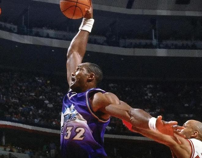 在蒂姆·鄧肯、凱文·加內特等后輩橫空出世之前,馬龍絕對是NBA首屈一指的第一大前鋒。雖然沒有那么華麗的球風,但憑借一手樸實無華的擋拆中投,馬龍每個賽季都是得分榜前三的存在,倘若不是因為邁克爾·喬丹,馬龍絕對不會有一個得分王的頭銜都無法得到。